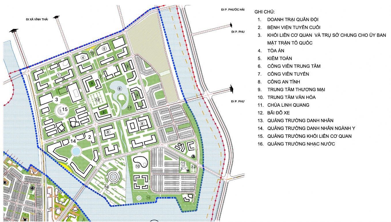 Dự kiến bố trí các tòa nhà hành chính, các cơ quan quản lý và dịch vụ công cộng.