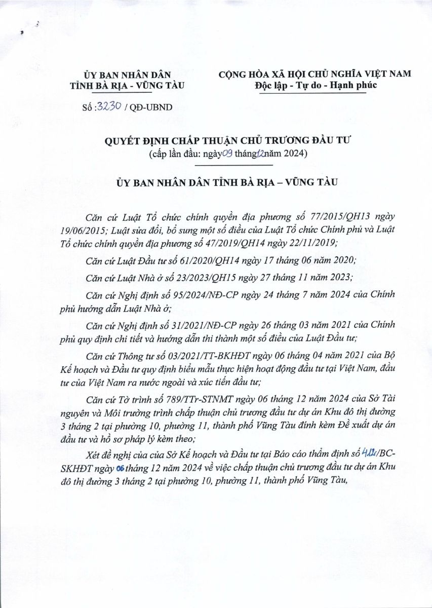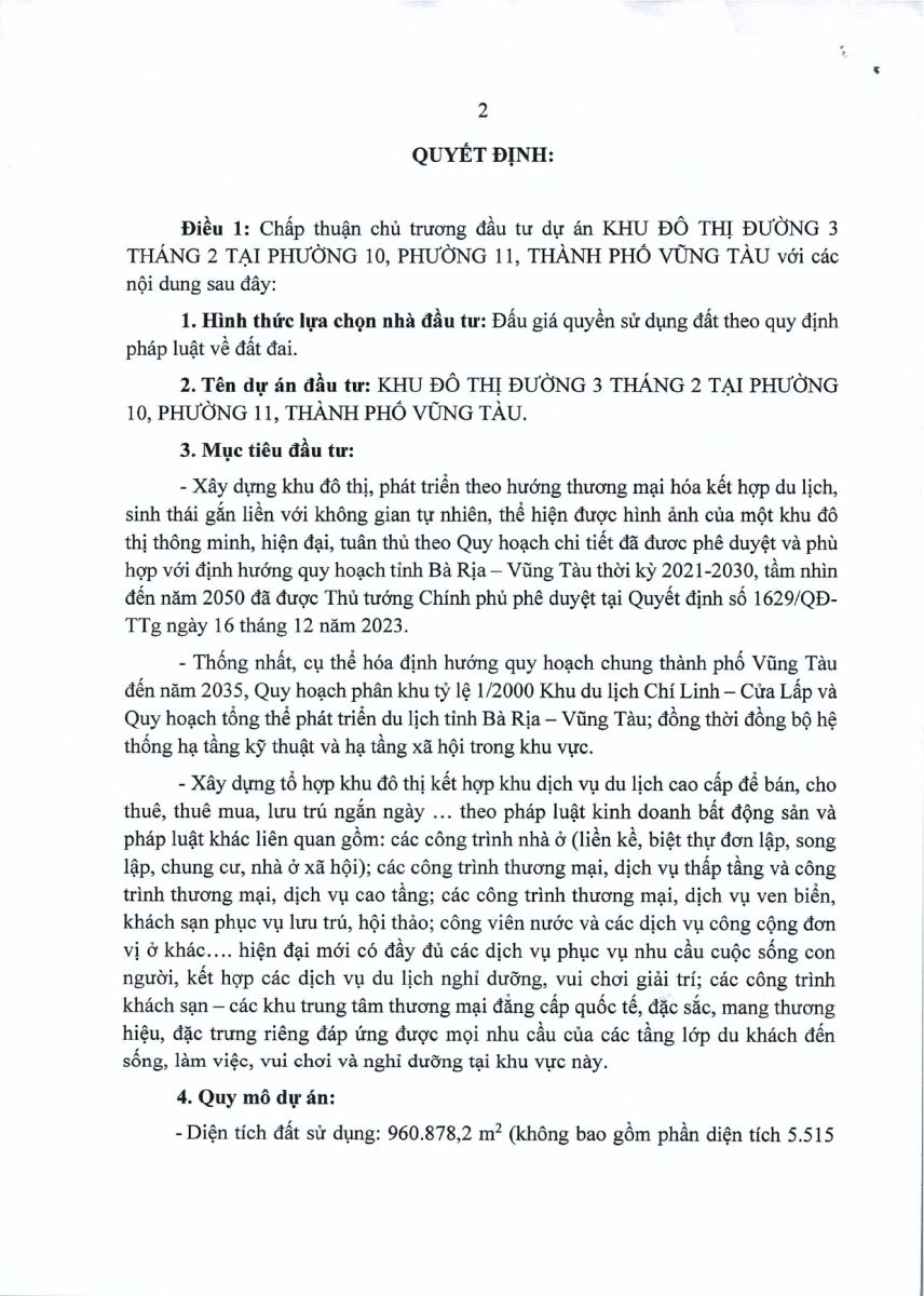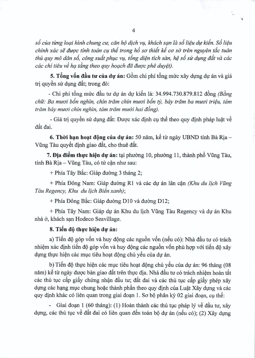 NỘI DUNG CHI TIẾT QUYẾT ĐỊNH CHỦ TRƯƠNG ĐẦU TƯ SUN BLANCA CITY VŨNG TÀU