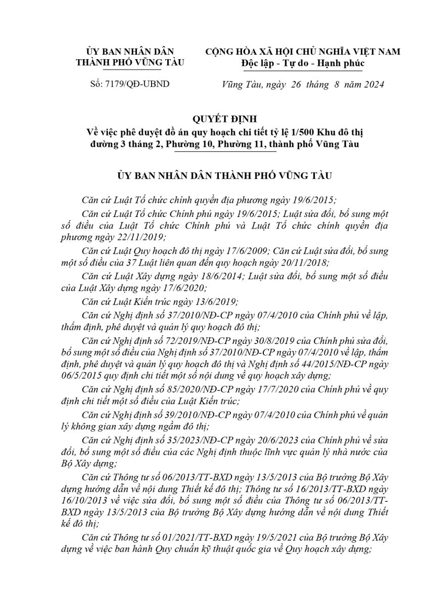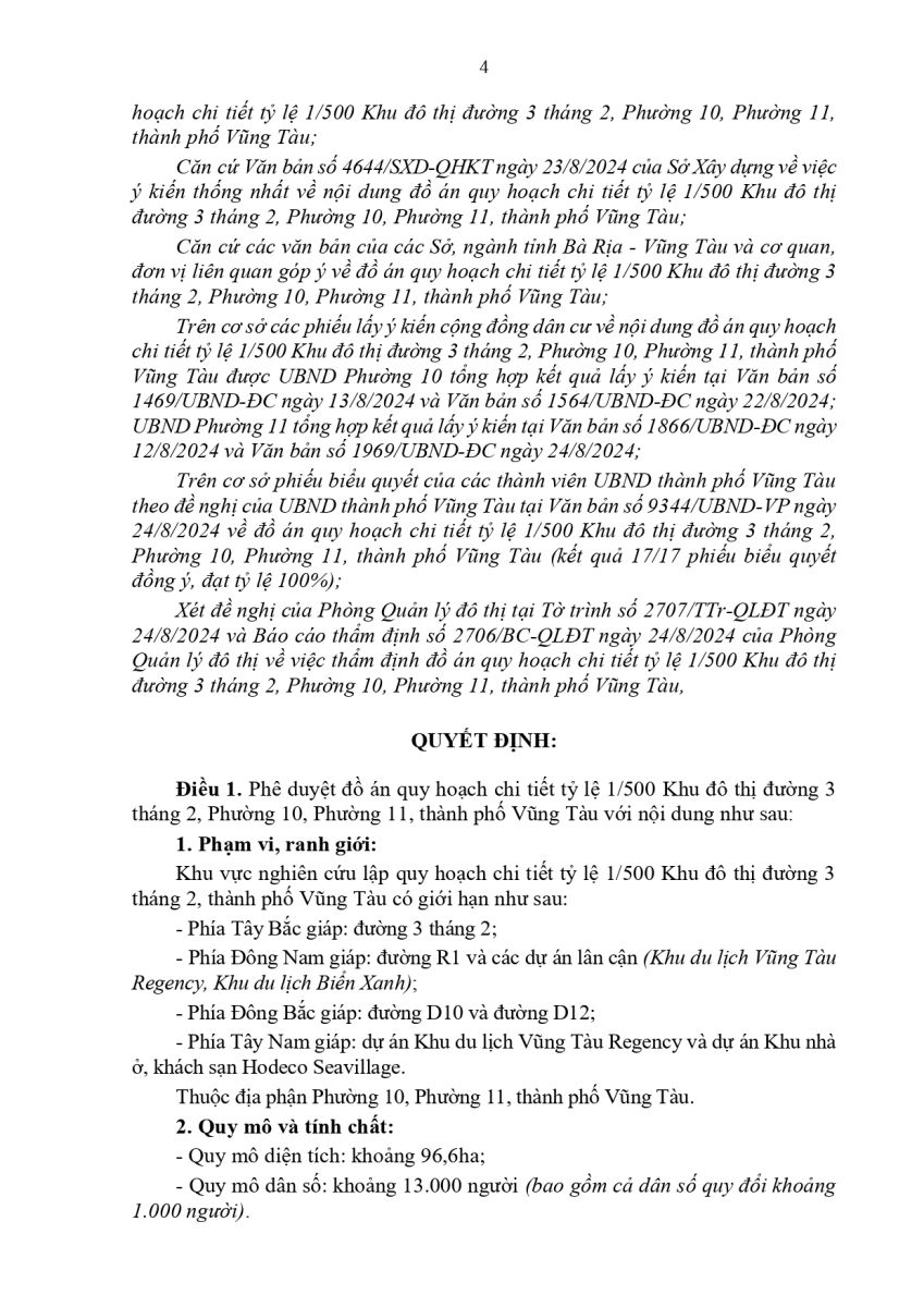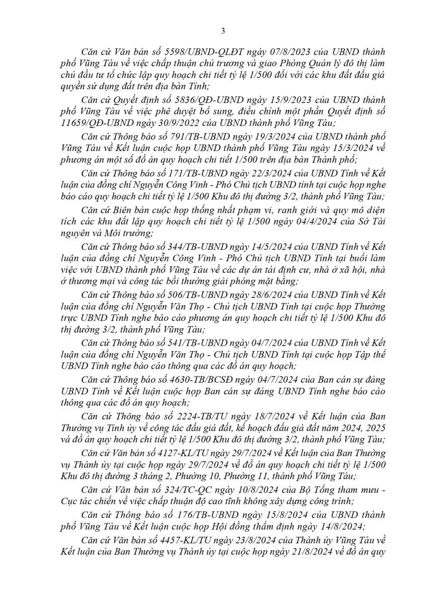 Ngày 26/8/2024, UBND TP. Vũng Tàu chính thức phê duyệt đồ án quy hoạch chi tiết 1/500 khu đô thị đường 3 tháng 2, Phường 10 và 11 với tổng diện tích 96,6ha. Dự án được định hướng trở thành đô thị dịch vụ – du lịch cao cấp, góp phần thay đổi diện mạo đô thị ven biển phía Nam.