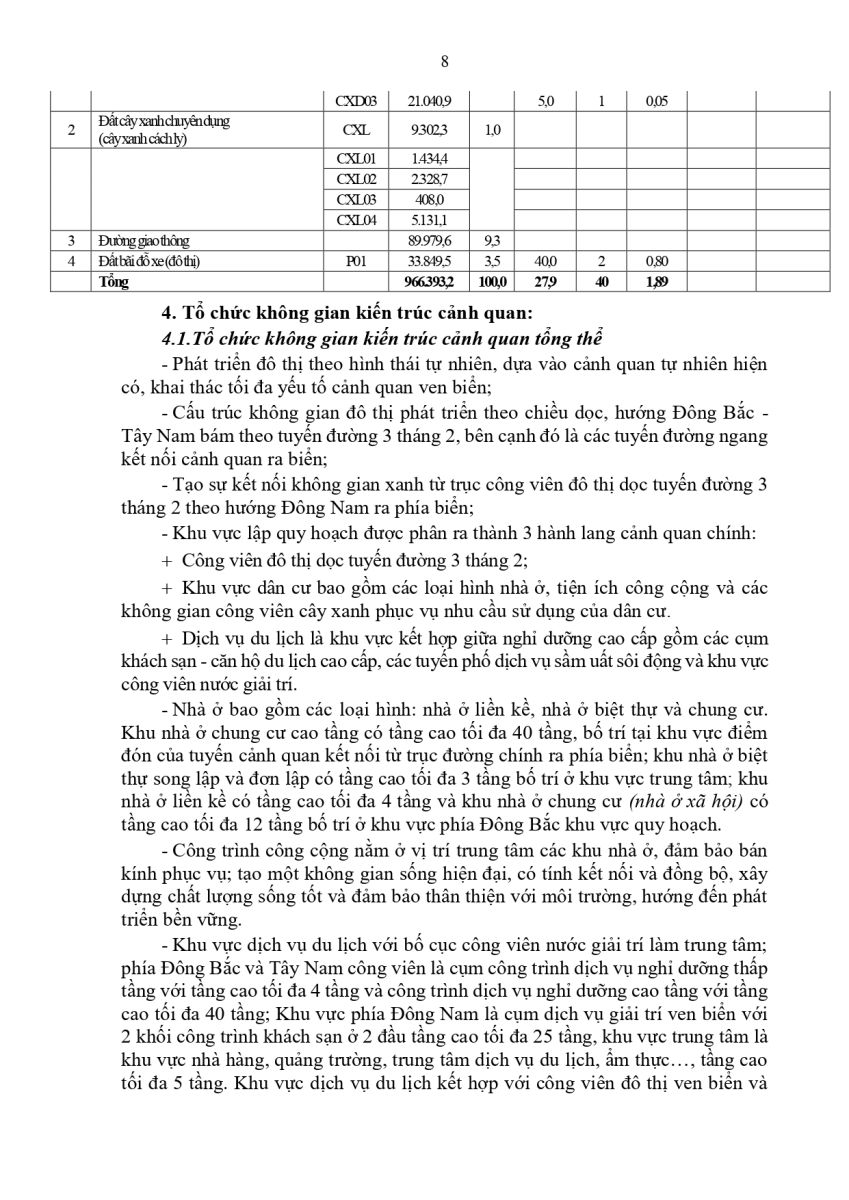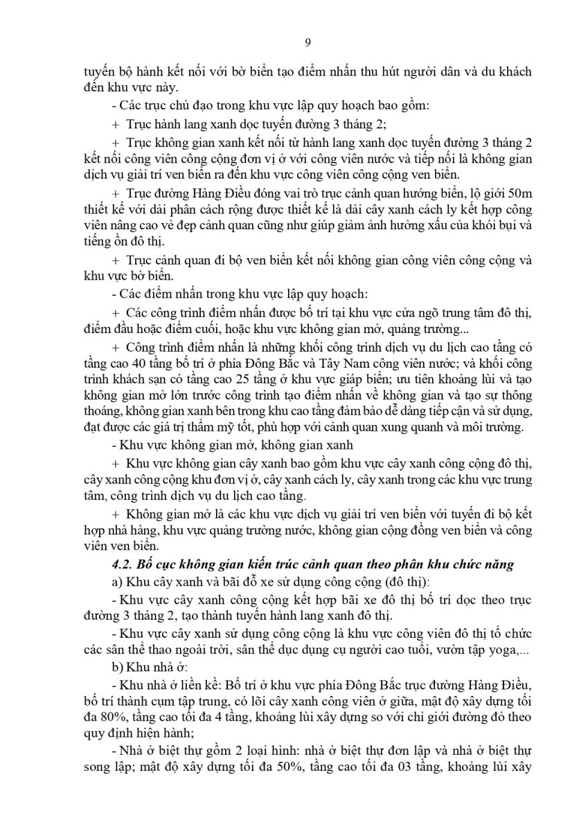 Không gian được tổ chức theo hành lang xanh ven tuyến đường 3/2, kết nối xuyên suốt ra biển. Điểm nhấn kiến trúc tập trung tại công viên nước và hai khối khách sạn cao